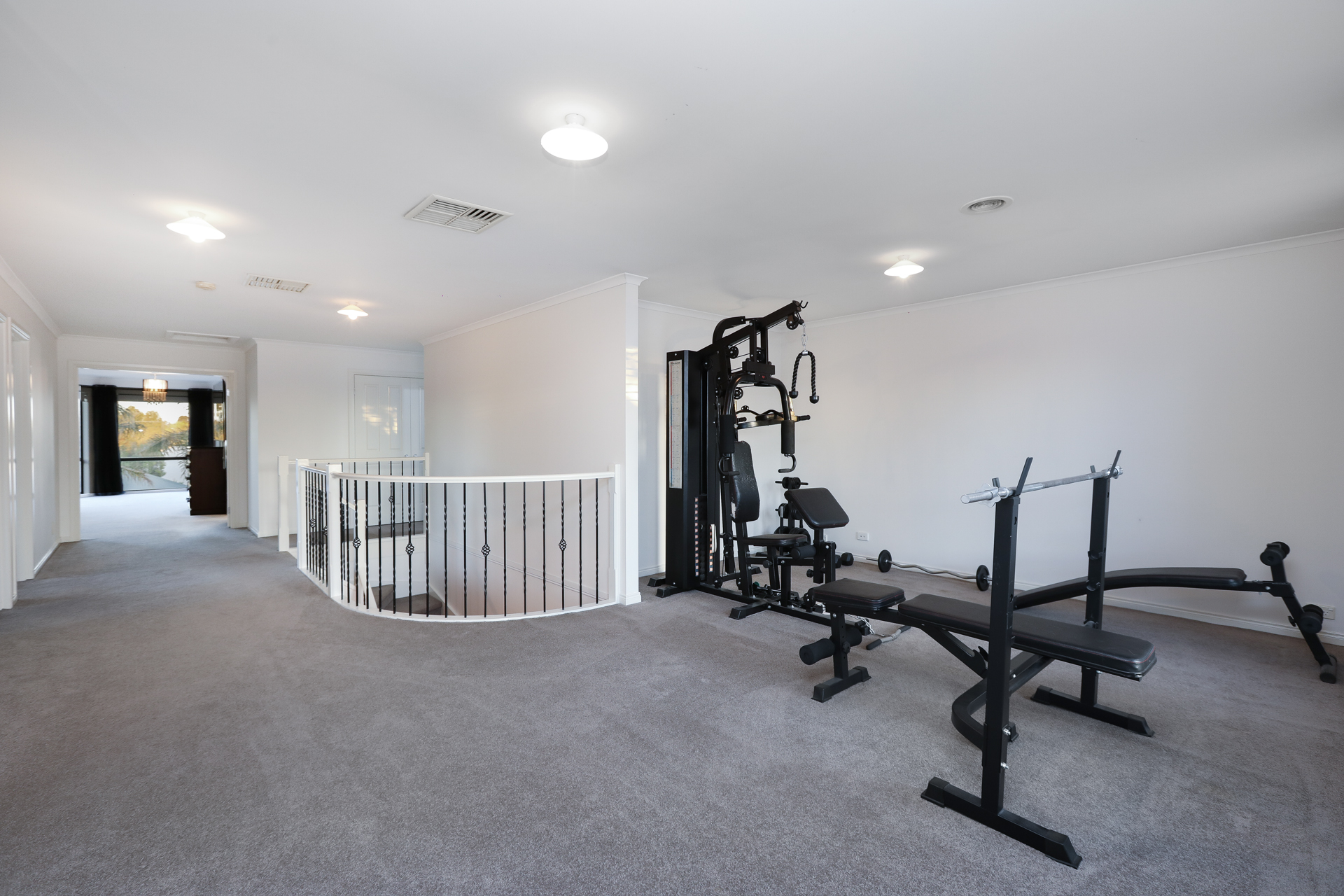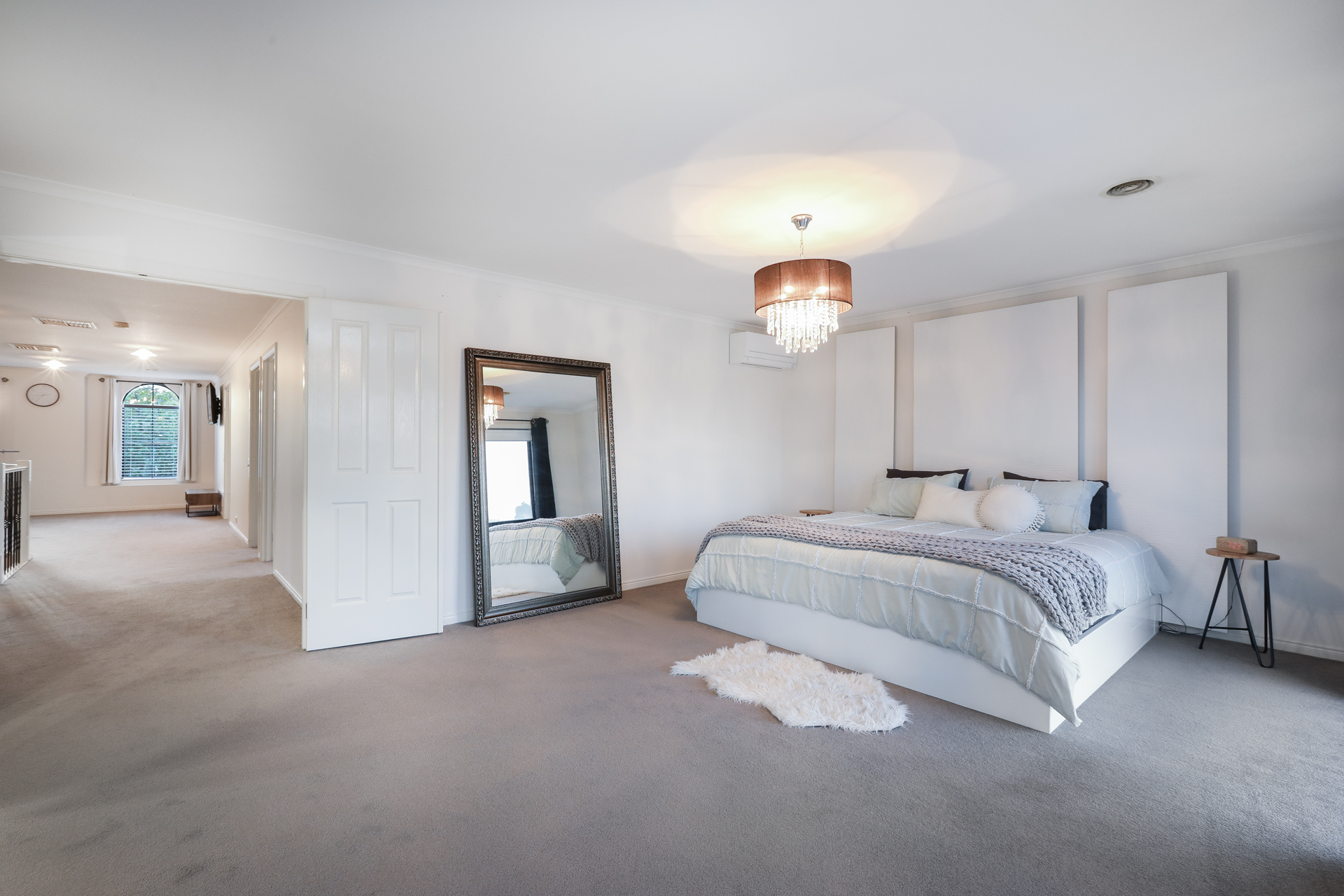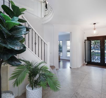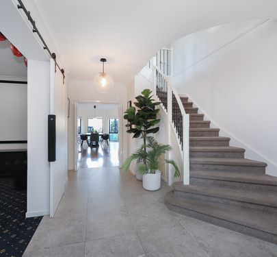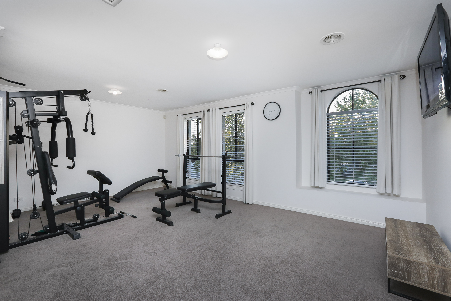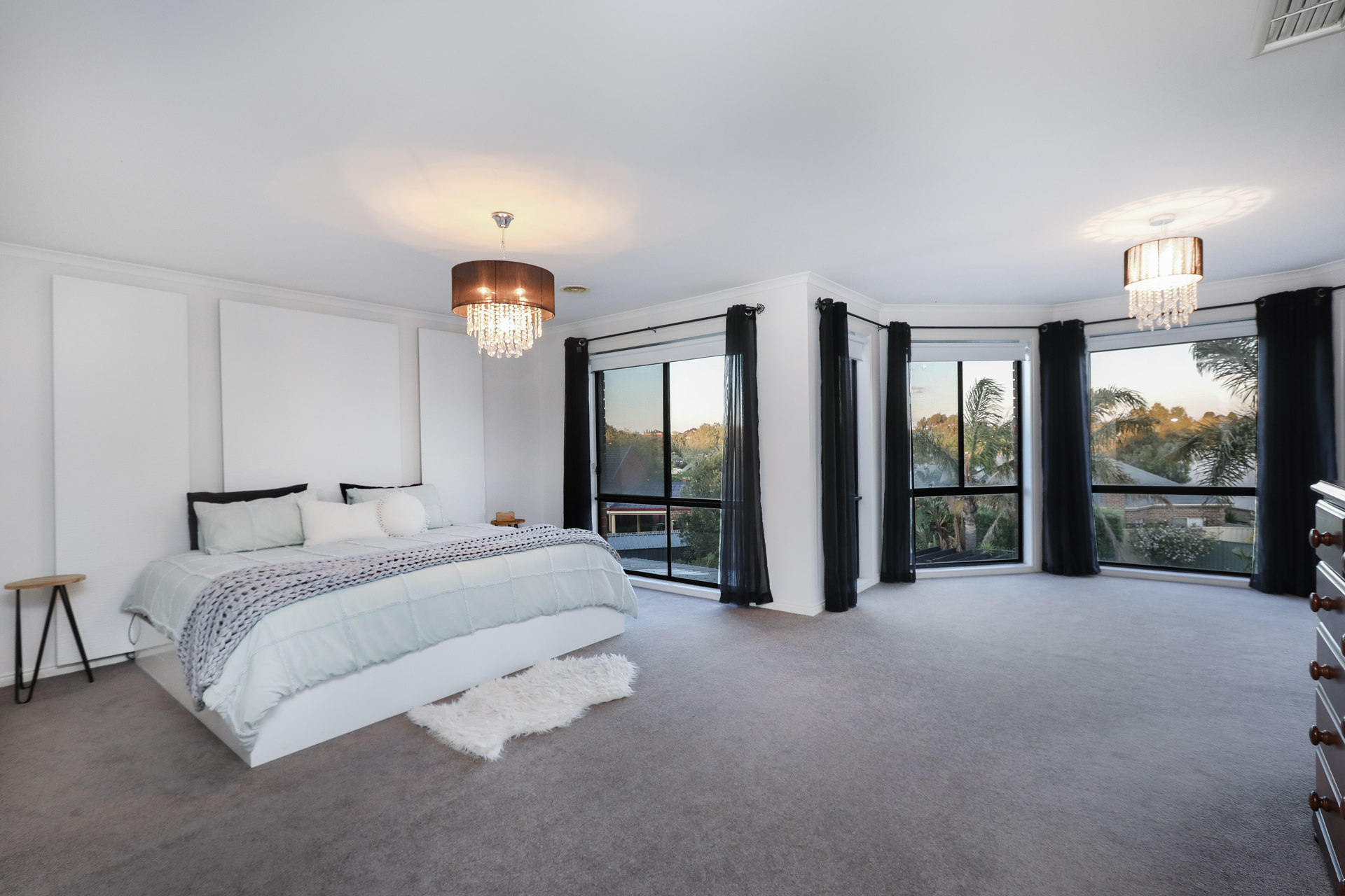 Upstairs, the master suite awaits with its walk-in robe, luxurious stone-topped ensuite, and unbeatable vistas, flanked by three double bedrooms with built-ins and a spacious multipurpose rumpus for the kids. Downstairs, a versatile study doubles as a fifth bedroom, while the fully renovated main bathroom and separate powder room keep things seamless. Relax in the converted theatre room featuring a 130" projector screen, 8-speaker surround sound, and six leather recliners for blockbuster movies or sports nights. With 9ft ceilings amplifying the airy feel, ducted heating, split system cooling throughout, in-house vacuum maid, full alarm, and surveillance cameras, every detail whispers security and ease.