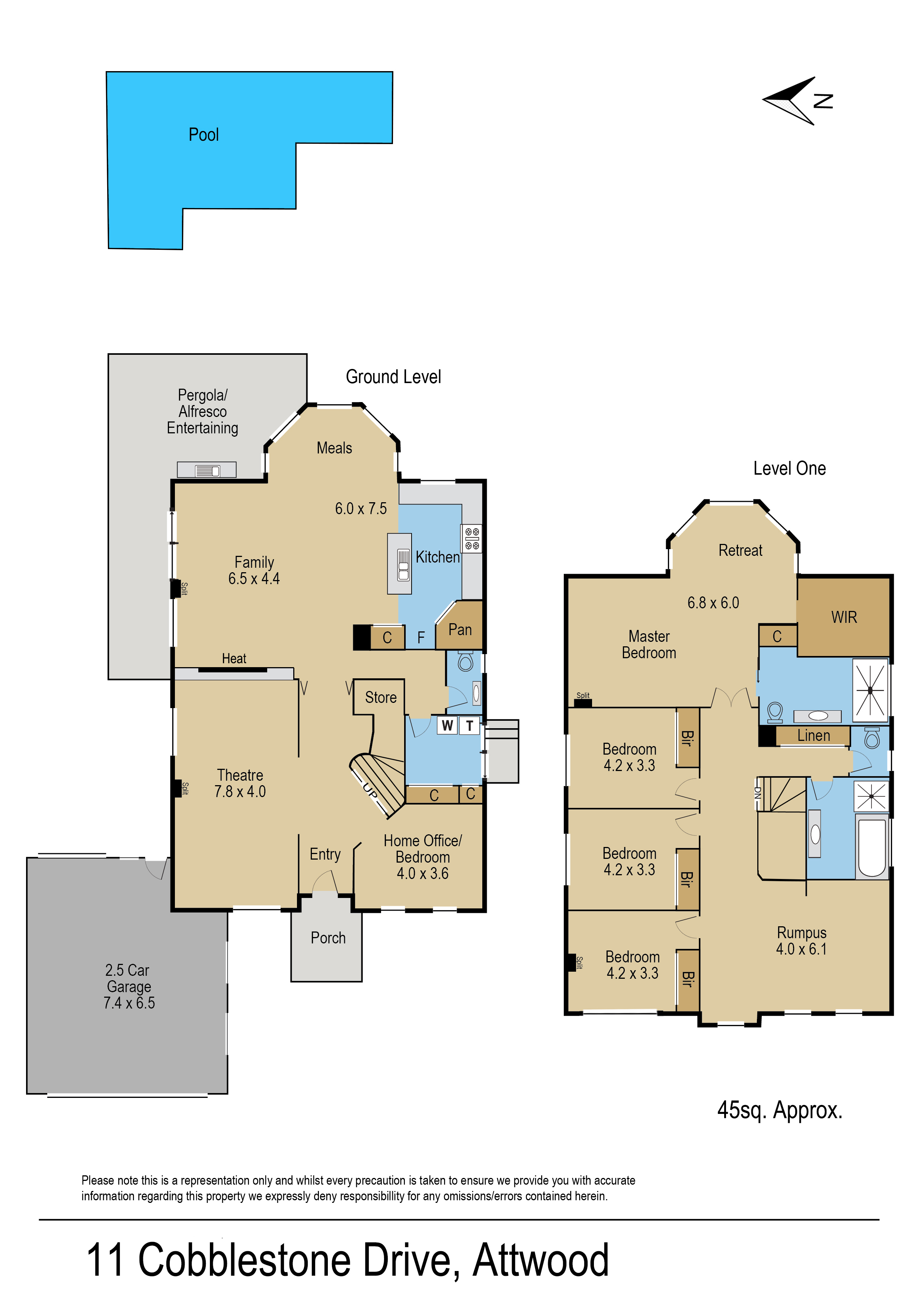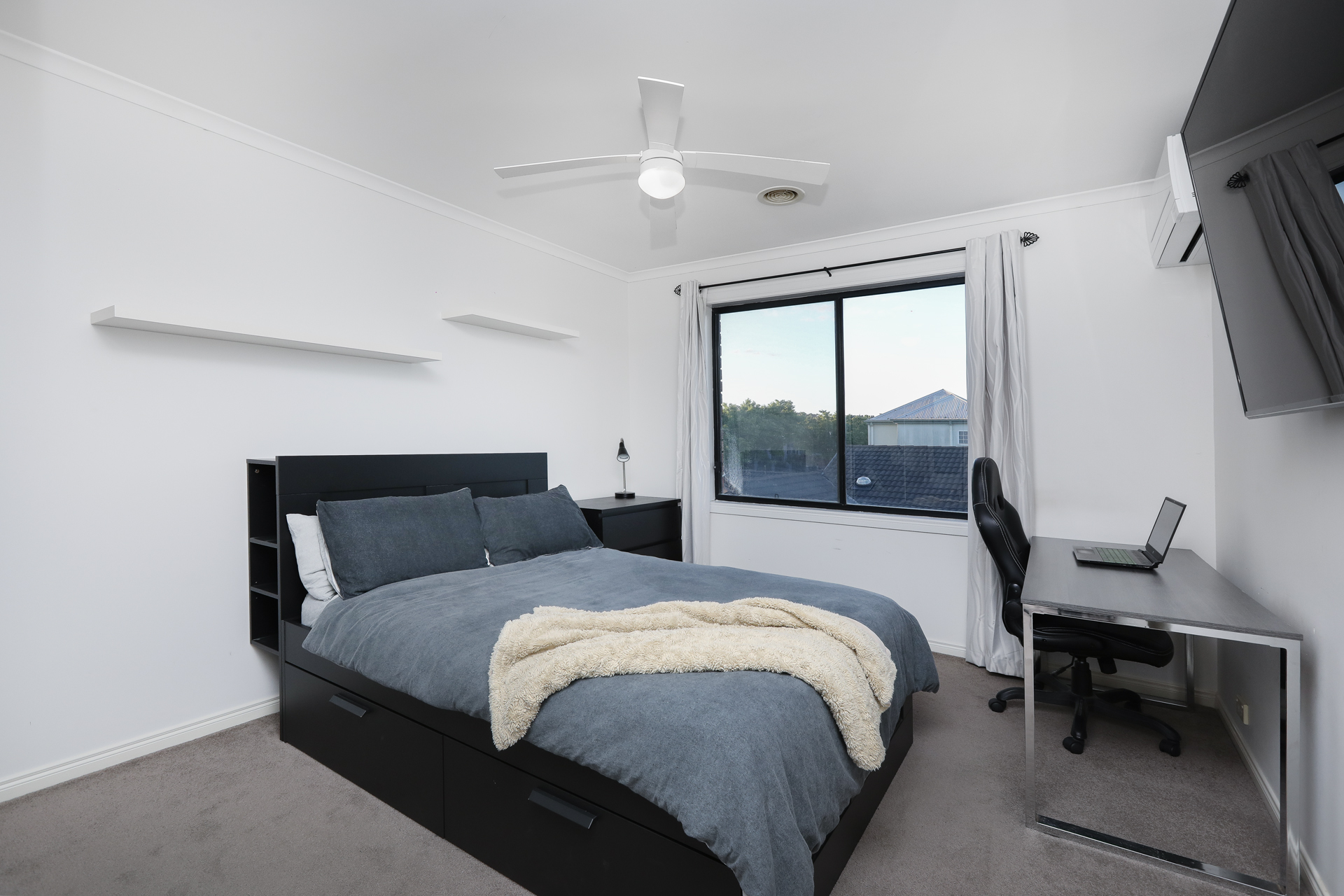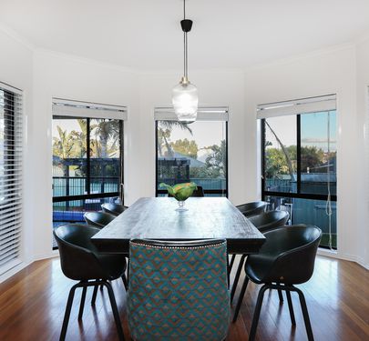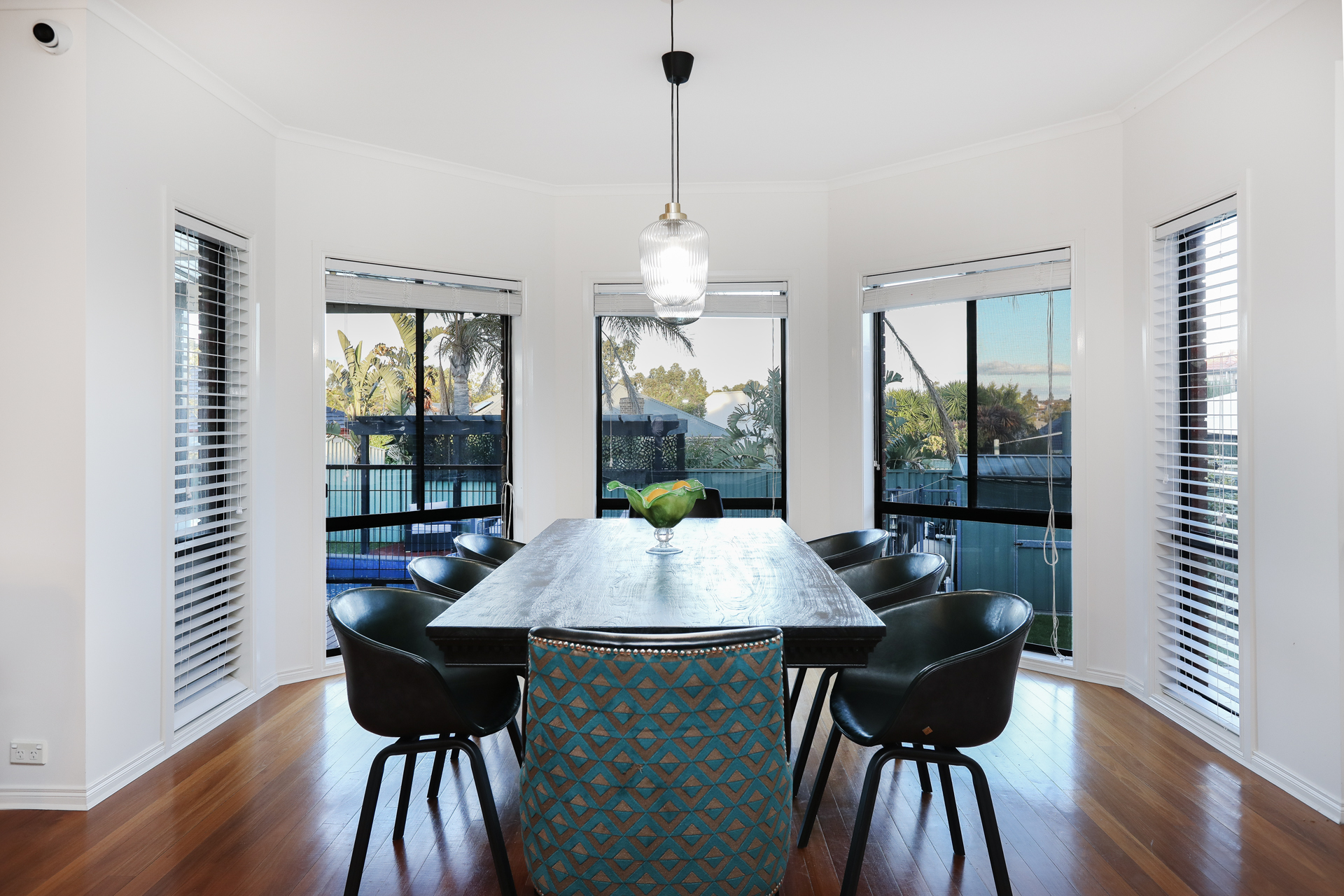 Upstairs, the master suite awaits with its walk-in robe, luxurious stone-topped ensuite, and unbeatable vistas, flanked by three double bedrooms with built-ins and a spacious multipurpose rumpus for the kids. Downstairs, a versatile study doubles as a fifth bedroom, while the fully renovated main bathroom and separate powder room keep things seamless. Relax in the converted theatre room featuring a 130" projector screen, 8-speaker surround sound, and six leather recliners for blockbuster movies or sports nights. With 9ft ceilings amplifying the airy feel, ducted heating, split system cooling throughout, in-house vacuum maid, full alarm, and surveillance cameras, every detail whispers security and ease.