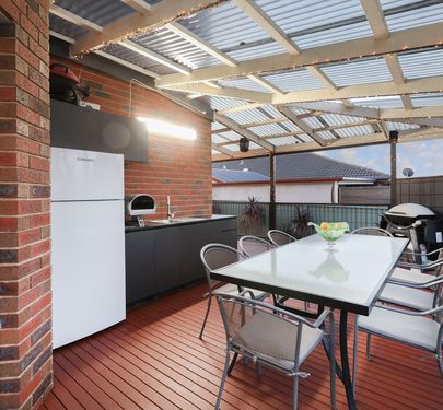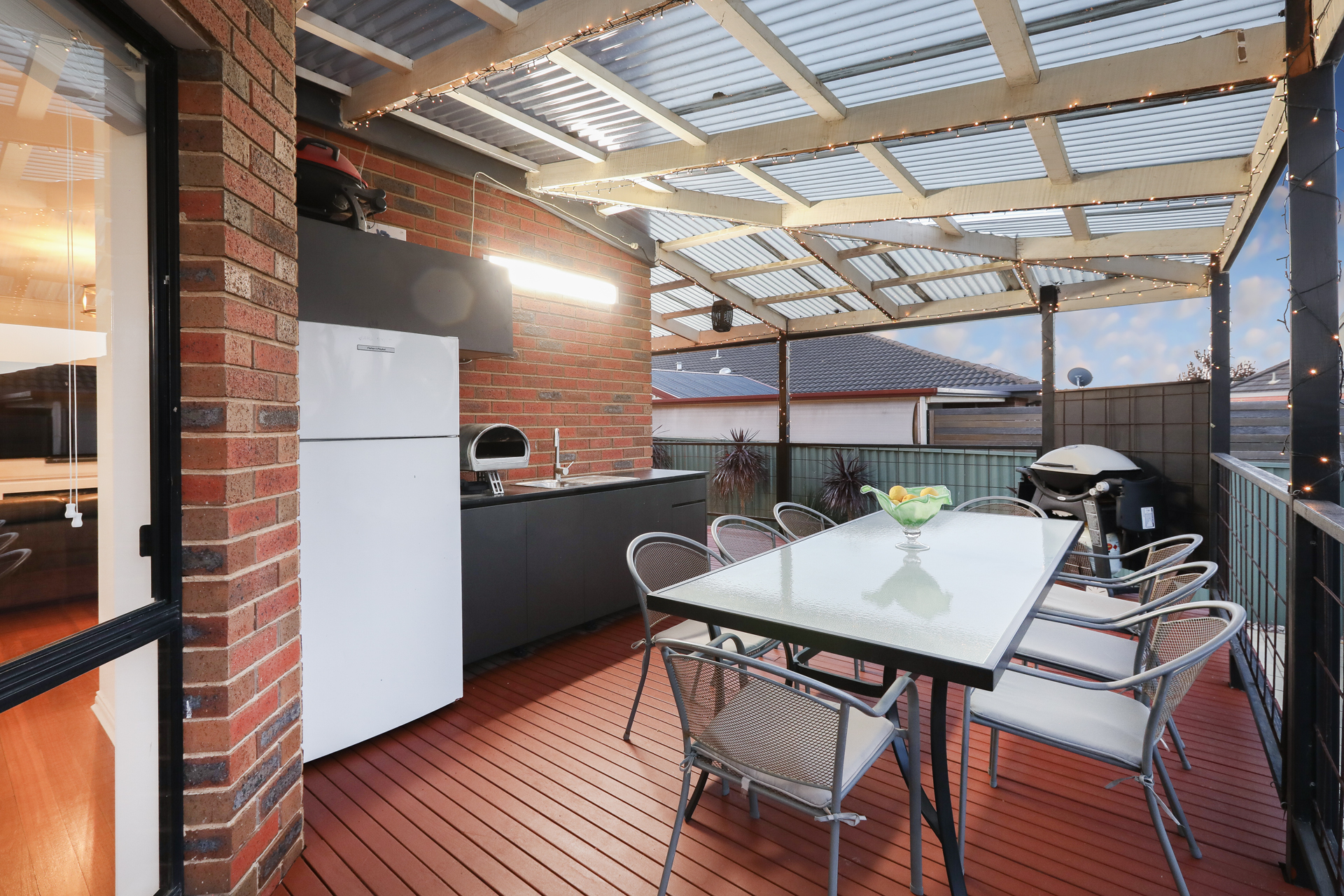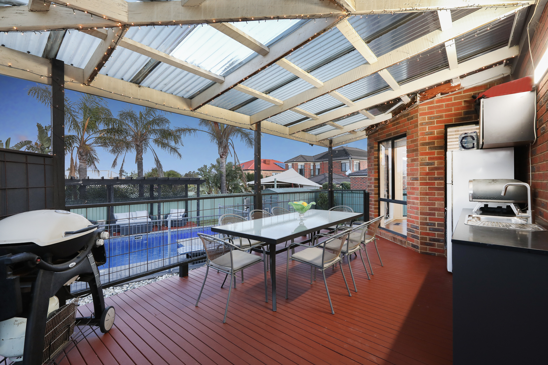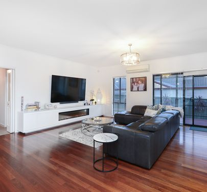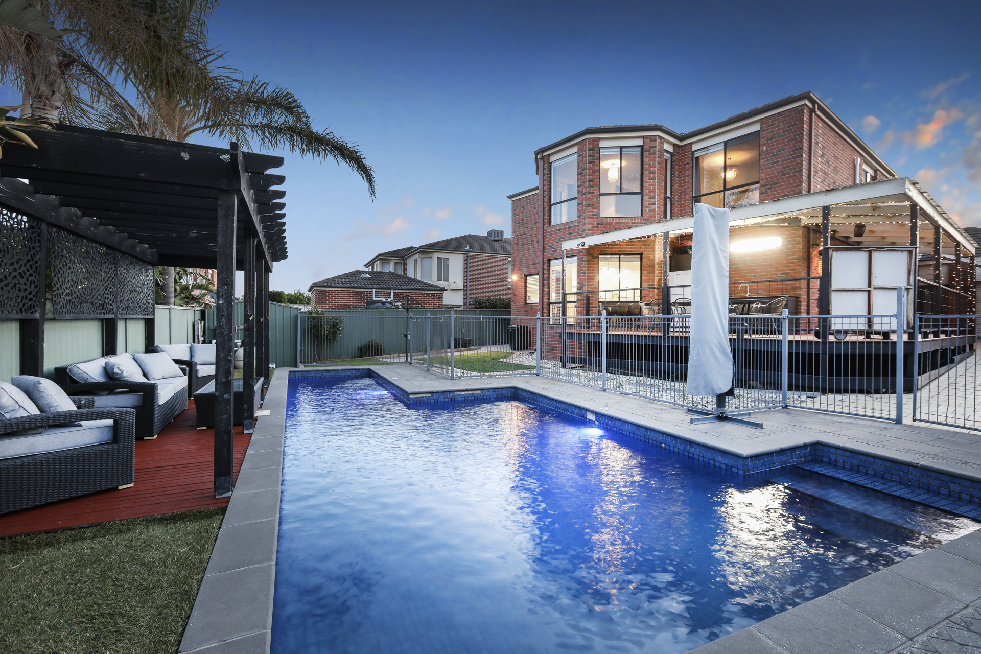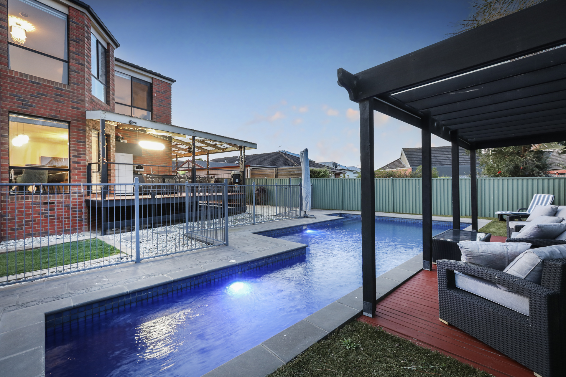 Imagine stepping into a sun-drenched haven where family memories unfold effortlessly. A spacious, family-friendly retreat just 20km from Melbourne's CBD, nestled in a quiet street buzzing with community warmth. This beautifully renovated gem boasts a resort-like backyard with a 44,000-litre solar-heated, salt-chlorinated pool, lush grass for little ones to play, and an expansive undercover alfresco deck complete with sink and storage for endless summer barbecues. Overlook it all from your open-plan living, dining, and stunning kitchen, where solid Jarrah floors glow under natural light. The fully upgraded 2-pack kitchen shines with stone benchtops, a zip tap, 900mm appliances, integrated dishwasher, walk-in pantry, and soft-close everything creating pure culinary joy.