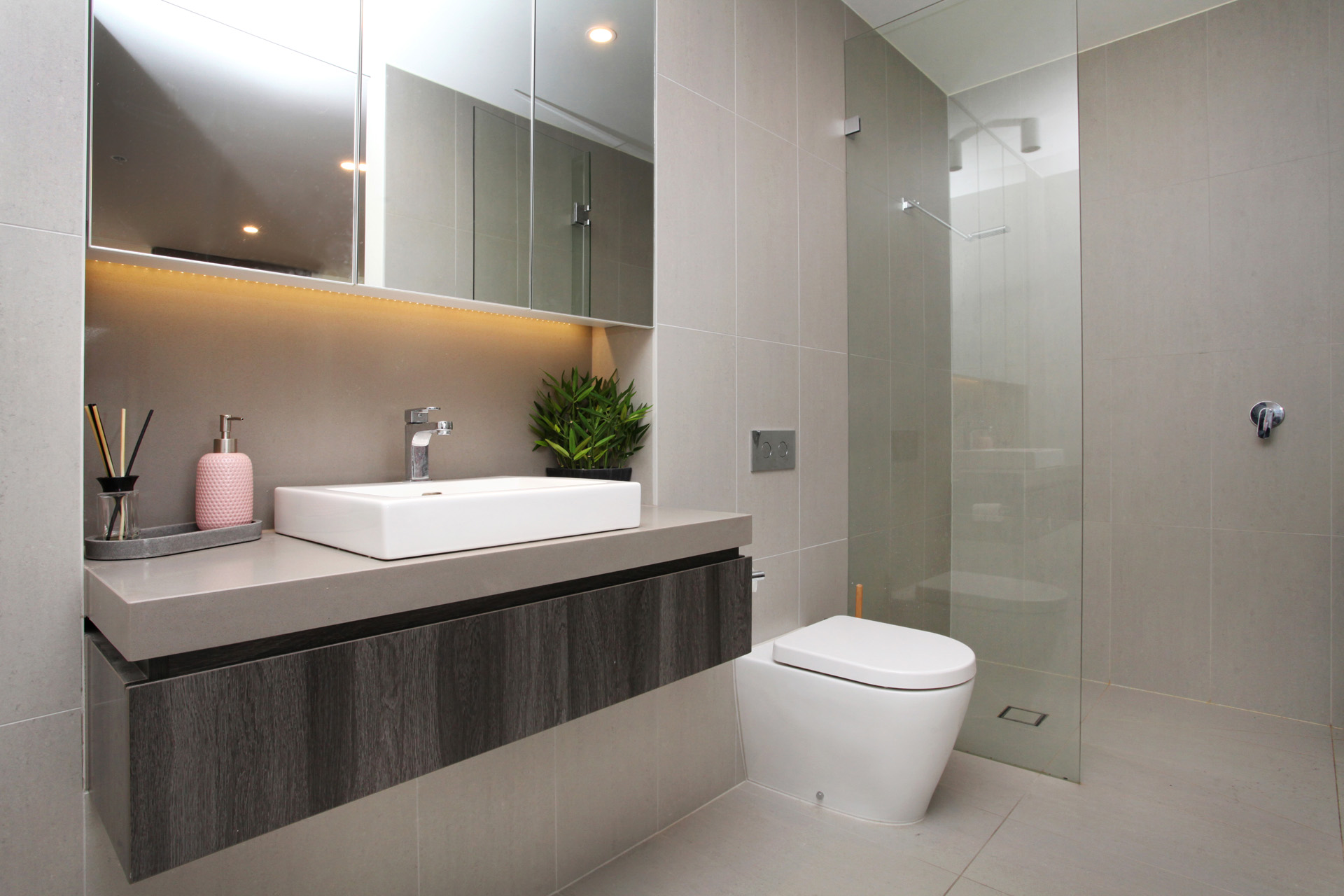 • Modern two-way bathroom and convenient Euro laundry